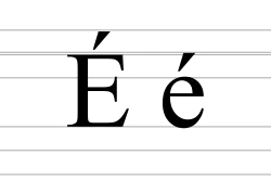 Літера é (вимовляється, як закрита голосна /e/) протистоїть è (вимовляється, вимовляється як відкрита голосна /ɛ/). Ця літера широко вживається у французькій мові.