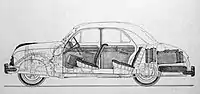 Підвіска усіх коліс була незалежною, з поперечними ресорами: передня — з верхніми поперечними (трикутними) важелями й ресорою знизу, а задня — з хитними півосями й ресорою зверху. Амортизатори — важільні.