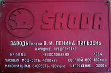 Заводська табличка Škoda з електровоза ЧС2