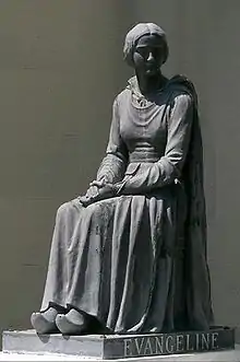 У 1920 році в Ґран-Пре, Нова Шотландія, акадійці реконструювали французьку церкву зі статуєю Євангеліни на її подвір'ї. Майже через десять років, у 1929 році, статуя Євангеліни, до якої позувала німа мексиканська кінозірка Долорес дель Ріо, що знялася у фільмі 1929 року "Євангеліна", була подарована місту Сент-Мартінвілль, штат Луїзіана, акторським складом і знімальною групою фільму. У 1934 році перший державний парк у Луїзіані був названий історичним пам'ятником штату Лонґфелло-Еванджелін[23].