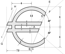 - Пропорції знаку євро. Архів оригіналу за 22 квітня 2006. Процитовано 4 січня 2007.