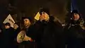 - 25 листопада — о 12:00 студентські колони університетів імені Івана Франка і Лісотеху рушили на з'єднання з колоною Політеху. Загальна кількість учасників студентського маршу складала близько 10 000 осіб. Колона студентів рушила від пам'ятника Тарасу Шевченку до ЛНУ імені Франка, де вони з'єднались з студентами та викладачами університету. Мітингувальники скандували гасла «Україна в ЄС!», «Приєднуйтесь до нас!», «Слава Україні!», «Банду геть!», «Разом ми сила!», «Міліція з народом!», «Революція!».[189] Під час проведення Євромайданом віча, народний депутат від ВО «Свобода» Юрій Михальчишин назвав студентських активістів на сцені, які хотіли відімкнути йому мікрофон, «сопляками»[190]. Конфлікт виник після закликів організаторів віча проводити мітинг без участі політиків, і прохання до політиків покинути сцену. Слова Михальчишина викликали обурення у багатьох присутніх на Євромайдані.[191] Близько 22:30 у Львові на розі Грабовського та Коперніка ДПС зупинила автобус зі студентами львівських вузів, який прямували на Євромайдан до Києва. У водія автобуса забрано документи — студенти оточили авто мєнтів і скандують «Ганьба!» та «Революція!». Кількість студентів постійно зростає — підтягуються нові групи.[192]