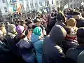 Дівчата з національними прапорами. Мітинг на підтримку Євромайдану 3.12.2013 року.