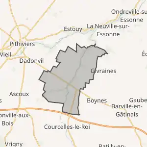 Муніципалітет розташований на відстані[2] близько 80 км на південь від Парижа, 45 км на північний схід від Орлеана.