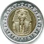 25 | 1,89 | 8,5 | Аверс: назва держави (араб. جمهورية مصر العربية); номінал арабською; рік карбування за ісламським та григоріанським календарем. Реверс: погребальна маска Тутанхамона. |