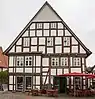 Напис «IEHOVA» зліва над нижнім вікном будинку на вулиці Lange 1 в Бад-Зальцуфлені, Німеччина, 1625 рік.