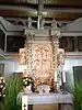 Напис на вівтарі «HUNC ARAE ORNATUM PROPRIUM TIBI, JOVA, DICAMUS» («Ця прикраса вівтаря присвячена Тобі, Єгово») Dorfkirche Dörnten, Німеччина.