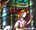 Девіз родини Фрайшинг «Jehova pastor meus» («Єгова — мій Пастир») під їхнім родовим гербом (ягня, знизу посередині) на вітражі в Бернському соборі, Швейцарія.