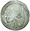 Напис «IEHOVA VOLENTE HUMILIS LEVABOR» на реверсі вайденбаумталера ландграфа Вільгельма V Гессен-Кассельського, Німеччина, 1637 рік.