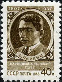 Єгіше Чаренц (справжнє прізвище — Согомонян Єгіше Абгарович; 13 (25) березня 1897, Карс, тепер Туреччина — 29.11.1937, Єреван) — вірменський радянський поет, прозаїк.
