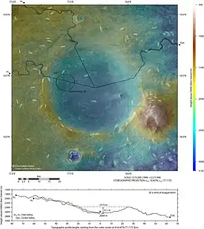 Метою місії Марсіанської наукової лабораторії є пошук ознак стародавнього життя. Висловлюються сподівання, що наступні космічні місії будуть спрямовані на пересилання зразків із місцевостей на Марсі, що були ідентифіковані як такі, що ймовірно містять залишки давніх форм життя. Для того, аби безпечно посадити космічний апарат на поверхню планети, необхідна пласка, рівна поверхня у формі кола діаметром у 19 кілометрів. Геологи сподіваються дослідити місця, де колись розташовувалися водойми.[5] Однією з цілей є дослідження шарів відкладень.