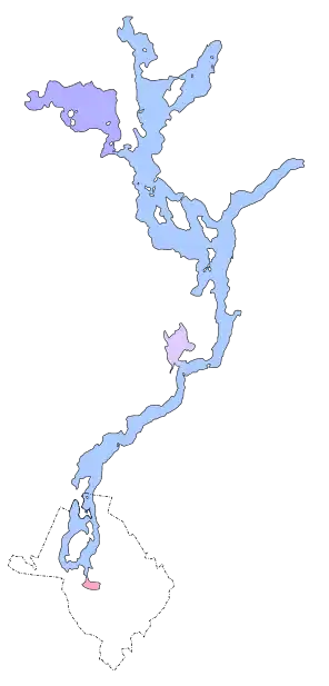 Озеро вузьке, має форму жолоба і проходить в основному з півночі на південь, у центральній частині розширюється.