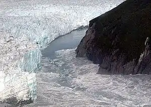 - Kirk Johnson (22 липня 2013). Alaska Looks for Answers in Glacier’s Summer Flood Surges. New York Times. Процитовано 23 липня 2013. «Glaciologists even have a name for the process, which is happening in many places all over the world as climates change: jokulhlaup, an Icelandic word usually translated as 'glacier leap.'»