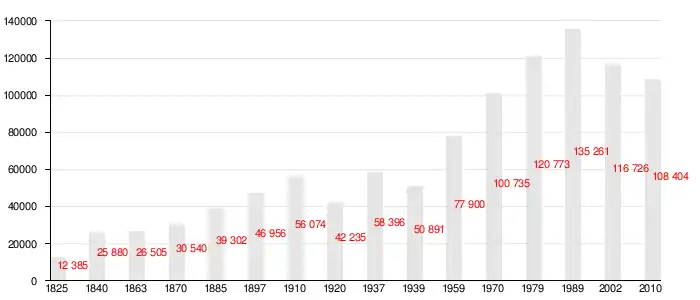 Зміна чисельності населення за період з 1825 по 2009 рік.