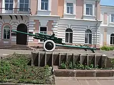 Біля приміщення встановлено технічний пам'ятний знак часів Другої світової війни — протитанкову гармату, а поруч споруджено стелу з переліком військових частин, які відзначилися у боях за Кіровоград у січні 1944 року, трохи в стороні поставили Пам'ятник невідомому солдатові[2].