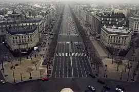 - Вид на Єлисейські поля з Тріумфальної арки