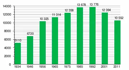 За даними перепису населення 2011 року у місті проживали 10 552 особи.