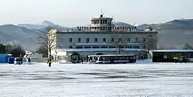 Розташований на берегах річки Авача, в 32 км на захід від м. Петропавловська-Камчатського.