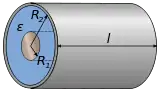 де l — довжина циліндра, b — радіус зовнішньої обкладки, a — радіус внутрішньої обкладки.