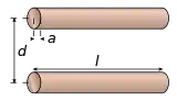 де l — довжина дротин, h — віддаль між ними, а та b — радіуси дротин.