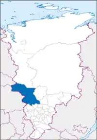 - Південь: Піровський, Бірилюський та Тюхтетський райони Красноярського краю
