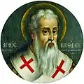 Св. Єпіфаній Кіпрський. Фрагмент розпису апсиди церкви Ескі-Гюмюш, Каппадокія. 2-а або 3-а четв. XI ст.