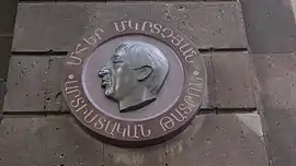 На будівлі театру — меморіальна дошка із зображенням профілю Фрунзіка Мкртчяна[1].