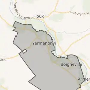 - Розташування муніципалітету Єрменонвіль на мапі Франції та сусідні муніципалітети