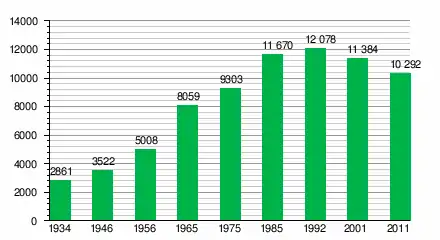 За даними перепису населення 2011 року у місті проживали 10 292 особи.