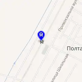 Розташована в селі Полтавка Красногвардійського району Автономної Республіки Крим між станціями Елеваторна (7 км) та Краснопартизанська (7 км).