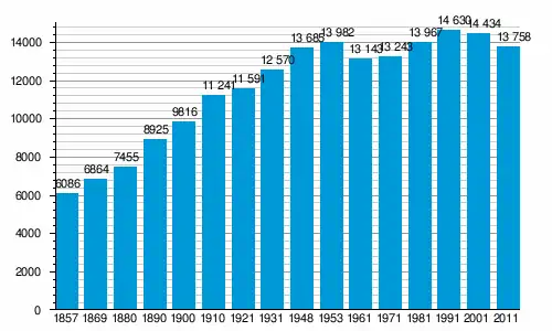 Населення громади за даними перепису 2011 року становило 13 758 осіб[1], 2 з яких назвали рідною українську мову[2]. Населення самого міста становило 5 234 осіб.[1]