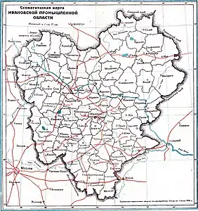 11 березня 1936 року Івановська промислова область була розділена на Івановську і Ярославську області. Більшість перших осіб Івановської промислової області було розстріляно в 1937-1938 роках.
