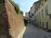 Місто одразу будувалося як могутня фортеця. Його територія була оточена спочатку дерев'яними, потім мурованими стінами, а ще земляним валом та широким ровом.