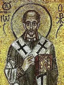 Іва́н Золотоу́стий (у церковній літературі також вживається Йоа́н/Іоа́н/Іоа́нн, Золотоу́ст/Златоу́ст/Златоу́стий) (дав.-гр. Ἰωάννης ὁ Χρυσόστομος; англ. John Chrysostom; 347, Антіохія — 14 вересня 407 р., Комани Понтійські[5][6]) — архієпископ Константинопольський, блискучий оратор, адвокат і релігійний полеміст, надзвичайна за колоритом постать, яка виділяється серед низки непересічних мислителів й проповідників Християнської Церкви. Святий, прославлений у лику святителів, учителів і чудотворців. Почесні титули: «Вселенський Учитель» і «Золотоустий»; останній титул — офіційно закріплений Церквою на Халкідонському соборі у V сторіччі та отриманий святим за надзвичайне красномовство. Понині в церквах відправляється Літургія Іоанна Золотоустого. Разом із Григорієм Богословом і Василій Великий вважається одним із трьох головних Отців Церкви у Православ'ї та у Східних католицьких церквах[6]. В Католицькій церкві відноситься до Учителів Церкви.