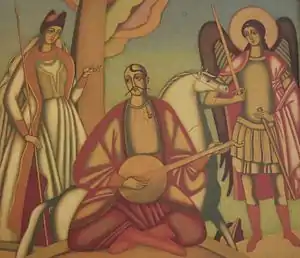Художник у полотнах на теми Шевченкової поезії посвоєму побачив Україну. І поле, й небо, і море, й пісня, і стосунки людей незвичайні. Найхарактерніша риса його картин — їхня внутрішня насиченість українським духом. Це те, що є в національному одязі, обряді, танці, пісні, музиці. Все це побачити, сформувати в певний образ і відтворити може лише той митець, який має генетично багату і цілісну натуру.