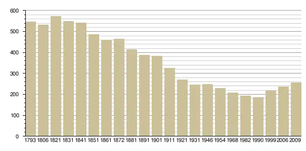 Динаміка населення (base Cassini de l'EHESS pour les nombres retenus jusque 1962[3], base Insee à partir de 1968 (population sans doubles comptes puis population municipale à partir de 2006)[4] · [5] ):
