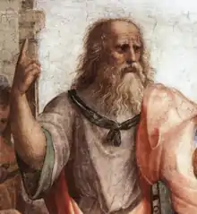 Для Платона і неоплатоників, як-от Плотін, ідея або ейдос — це довершена (доступна розуму) вічна сутність речі на противагу чуттєвому мінливому (минущому) в речі[1]. Ідеї безтілесні, знаходяться поза визначених речей і явищ; вони становлять особливий ідеальний світ (царство ідей), яким і є справжня дійсність, трансцендентний світ істинного буття. Ідея є сутність не окремої речі, але будь-якого виду речей. Речі чуттєвої дійсності існують завдяки ідеям, і ідеї є їхніми зразками.