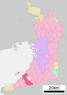 - Хіґашіде М. Історія міст префектури Осака. Адміністративний поділ Японії. (японською). Архів оригіналу за 25 червня 2013. Процитовано 20 вересня 2012.