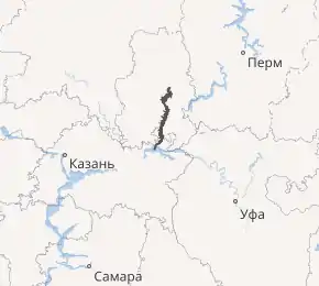 Річка протікає територією двох республік — Удмуртії й Татарстану. Напрямок руху — з півночі на південь. Впадає до річки Кама, правої притоки Волги, за 124 км від її гирла. Загальна довжина річки становить 237 км (від витоків річки Великий Іж — 259 км), з яких 70 км — ділянка від витоків до греблі Іжевського ставу. Площа басейну становить 8 510 км², в тому числі 1 640 км² вище греблі. Середній похил не перевищує 8 м/км.
