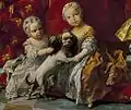 Family of Philip V (деталь), картина Louis Michel van Loo (1743); Ізабелла з кузиною Марією Ізабеллою, принцесою Непалу та Сицилії (1743–1749).