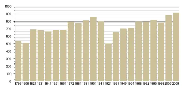 Динаміка населення (base Cassini de l'EHESS pour les nombres retenus jusque 1962[3], base Insee à partir de 1968 (population sans doubles comptes puis population municipale à partir de 2006)[4] · [5] ):