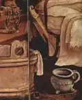 Дерев'яна діжка з рушником і горщиком трактуються також як нагадування про те, що вівтар був створений для монастиря, який займався доглядом за хворими: орден антонітів піклувався не тільки про душевне, а й про тілесне зцілення людей.