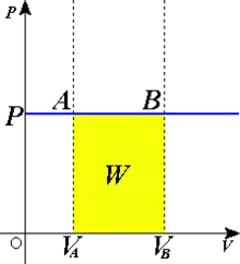 З визначення роботи слідує, що макроскопічна робота при нескінченно малій зміні об'єму на величину dV при ізобаричному процесі дорівнює: