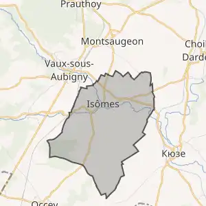 - Розташування муніципалітету Ізом на мапі Франції та сусідні муніципалітети