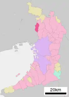 - Хіґашіде М. Історія міст префектури Осака. Адміністративний поділ Японії. (японською). Архів оригіналу за 25 червня 2013. Процитовано 20 вересня 2012.