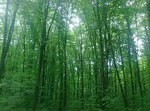 На більш широких плакорах зростають угрупування дубових лісів ліщиново-копитневих та ліщиново-зеленчуковиих, а на їхніх схилах - ліщиново-зірочникових та ліщиново-волосистоосокових.