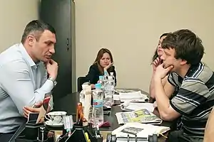 ![]() Юрій Ілючек поруч з Робером Піресом (Євро-2012) | |