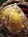 Митра розділена на чотири секції, що представляють віхи сходження Священного римського імператора Рудольфа II.