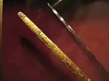 Золоті піхви датуються більш раннім періодом, ніж сам меч. Імовірно, вони були виготовлені для коронації Генріха IV, що пройшла в 1084 році. Прикрашені зображеннями 14 імператорів, від Карла Великого до Генріха III включно.