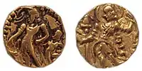 Справжнім засновником держави став син Гхатоткача Чандрагупта I, коронація якого в 319 році (дата умовна — можливі варіанти від кінця 318 до 320 року) стала датою заснування гуптської ери. Чандрагупта I прийняв новий титул — махараджадхіраджа, що буквально означало «великий цар, цар царів». Те, що він мав імператорські амбіції свідчив і початок карбування при Чандрагупті золотих монет — динарів[3]. Динар, вагою 7,5 г, мав високий вміст золота і гарантував його високу ліквідність і довіру з боку споживачів[5].